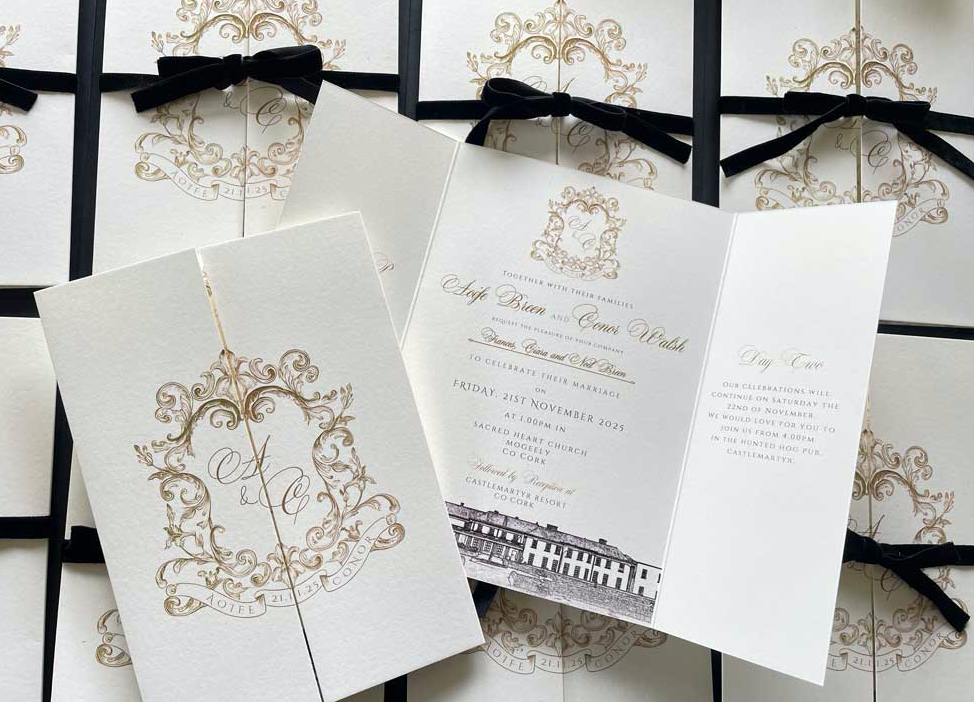Elevate your wedding stationery with this elegant suite that balances tradition with tailored refinement. The Gold Crest is more than an invitation — it’s a keepsake your guests will treasure.