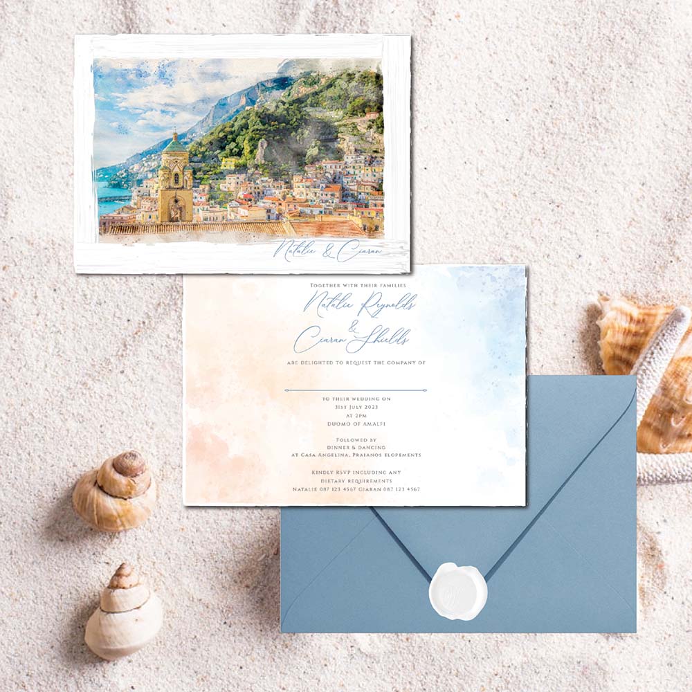 Wedding Invitations | A5120 – Amalfi Coast Watercolour