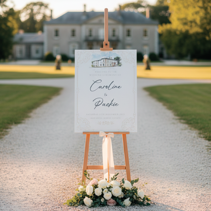Decorate the entrance to your wedding with the beautiful Watercolour Venue welcome sign.